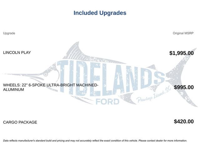 *POWER DRIVER'S SEAT*, *ACTIVE BLIND SPOT DETECTION SYSTEM*, *EASY TO CLEAN SEAT & FLOOR MATERIALS*, *USB PORTS*, *BUILT IN NAVIGATION SYSTEM*, *HEATED WINDSHIELD*, *POWER FRONT PASSENGER SEAT*, *BACKUP COLLISION INTERVENTION/ AUTO STOP*, *LEATHER SEATS*, *SIDE MIRROR TURN SIGNALS*, *VOICE ACTIVATED CONTROLS*, *BluetoothĀ® STREAMING*, *PUSH-BUTTON IGNITION*, *FORWARD-COLLISION WARNING (FCW)*, *AUTOMATIC EMERGENCY BRAKING (AEB)*, *REAR CROSS TRAFFIC ALERT*, *BLIND-SPOT MONITORING*, *360-DEGREE SURROUND-VIEW CAMERA SYSTEM*, *APPLE CarPlay*, *ANDROID AUTO*, 3rd Row Seats, All Services Up To Date, BluetoothĀ® Streaming Audio, Cooled Seats, Parking Sensors, Push Button Start, Remote Start, Head-Up Display, USB Port, 3rd Row Seats/ Third Row Seats, Sirius XM Radio, Rain Sensing Windshield Wipers, Memory Seat, Power Seats, Multi-Zone Climate Control, Steering Wheel Controls, Cargo Package, 4WD, Mahogany Red Leather, 20 Speakers, 3.73 Axle Ratio, 3rd row seats: split-bench, 4-Wheel Disc Brakes, ABS brakes, Adaptive suspension, Adjustable pedals, Air Conditioning, Alloy wheels, AM/FM radio: SiriusXM, AppLink/Apple CarPlay and Android Auto, Audio memory, Auto High-beam Headlights, Auto tilt-away steering wheel, Auto-dimming door mirrors, Auto-dimming Rear-View mirror, Auto-leveling suspension, Automatic temperature control, Bodyside moldings, Brake assist, Bumpers: body-color, Cargo Package, Chrome Roof Rack w/Crossbars, Compass, Delay-off headlights, Destination Theme, Driver door bin, Driver vanity mirror, Driver's Seat Mounted Armrest, Dual front impact airbags, Dual front side impact airbags, Electronic Stability Control, Emergency communication system: 911 Assist, Equipment Group 800A Black Label, Exterior Parking Camera Rear, Floor Carpet/Mats - Mahogany Red w/Dinamica Suede, Four wheel independent suspension, Front anti-roll bar, Front Bucket Seats, Front dual zone A/C, Front fog lights, Front License Plate Bracket, Front reading lights, Fully automatic headlights, Garage door transmitter: HomeLink, Genuine wood console insert, Genuine wood door panel insert, GVWR: 7,625 lbs Payload Package, Head restraints memory, Headliner - Mahogany Red Dinamica Suede, Heads-Up Display, Heated door mirrors, Heated front seats, Heated rear seats, Heated steering wheel, HVAC memory, Illuminated entry, Khaya Appliques, Leather steering wheel, Leather-Wrapped Interior - Mahogany Red, Lincoln Play, Low tire pressure warning, Memory seat, Navigation System, Occupant sensing airbag, Outside temperature display, Overhead airbag, Overhead console, Panic alarm, Passenger door bin, Passenger seat mounted armrest, Passenger vanity mirror, Pedal memory, Power adjustable front head restraints, Power adjustable rear head restraints, Power door mirrors, Power driver seat, Power Liftgate, Power moonroof: Panoramic Vista Roof, Power passenger seat, Power steering, Power windows, Radio data system, Radio: Revel Ultima AM/FM/HD/MP3 Audio System, Rain sensing wipers, Rear air conditioning, Rear anti-roll bar, Rear audio controls, Rear reading lights, Rear window defroster, Rear window wiper, Reclining 3rd row seat, Remote CD player, Remote keyless entry, Roof rack: rails only, Security system, SiriusXM Radio, Speed control, Speed-sensing steering, Speed-Sensitive Wipers, Split folding rear seat, Spoiler, Steering wheel memory, Steering wheel mounted audio controls
